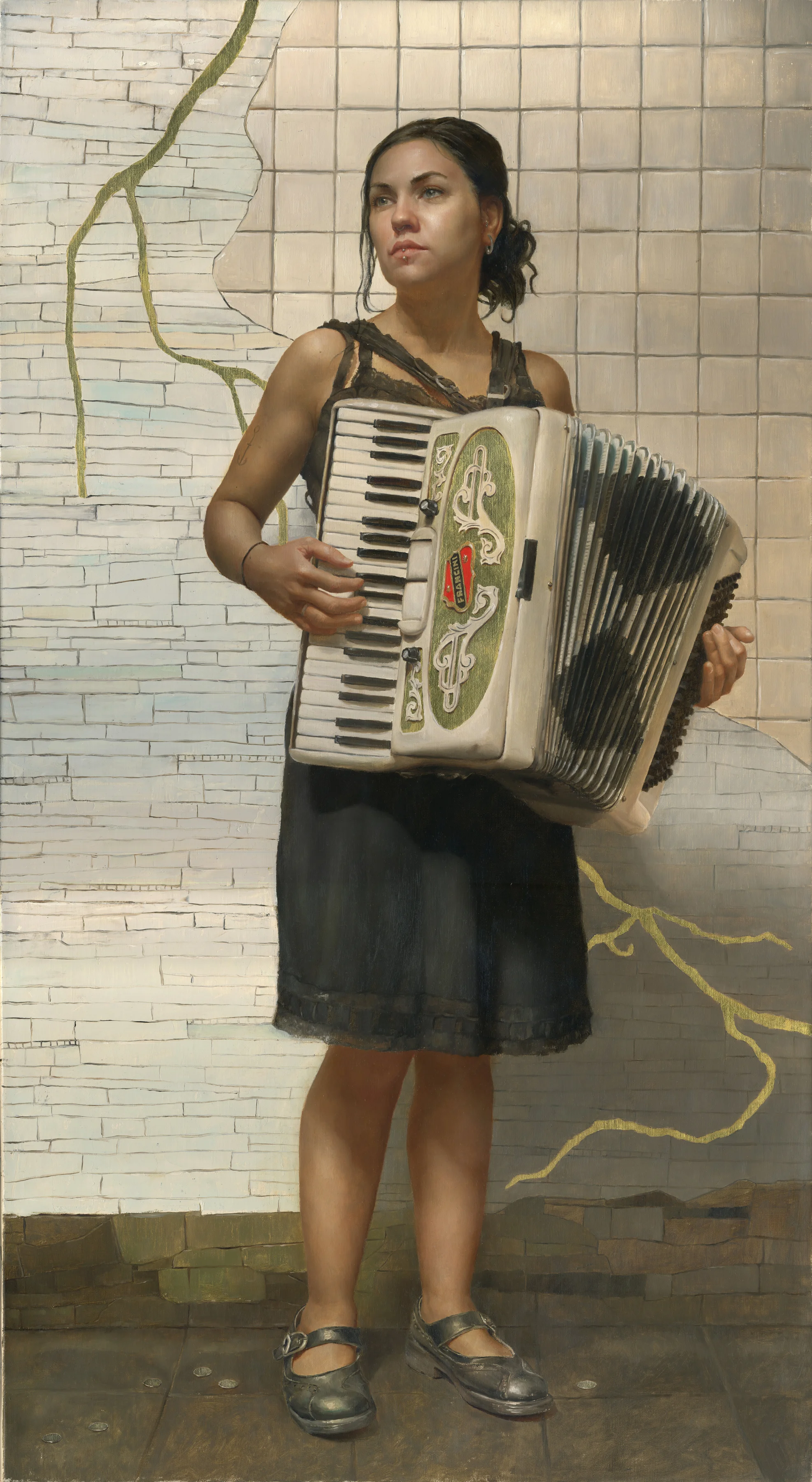 Underground Busk, 40x22", Oil on Linen with Gold and Silver Gilding, 2013